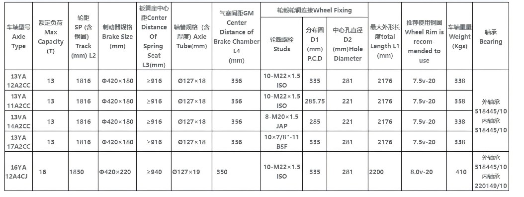 Il s'agit d'un essieu américain 13T standard. Grâce à une conception optimisée, il atteint un poids léger sans sacrifier la force, réduisant son propre poids. Un essieu 13t standard ne pèse que 330 kg. Il est solide et durable, améliorant les propriétés mécaniques globales de l'essieu, et a une excellente résistance et ténacité à la fatigue.